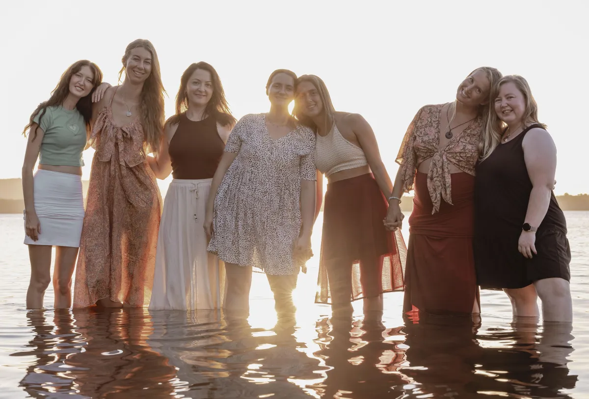 By a circle of heart-centered women who see you, celebrate you, and remind you that you are never alone on this journey